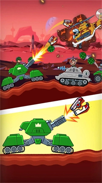 沙漠坦克对决是一款有着卡通风格的横版坦克对抗射击类游戏。在游戏里,玩家能够依据自身需求,自由地对坦克进行改装,无论是炮管、履带、弹药,还是其他配置,都能实现自定义。而且,玩家还能按照个人喜好,挑选坦克的颜色与花纹。完成坦克定制后,就可以投身战场啦。在战场上,玩家得把控好角度,精准发射炮弹击中敌人。值得一提的是,该游戏支持联机系统,玩家完全可以喊上自己的好朋友一同并肩作战。