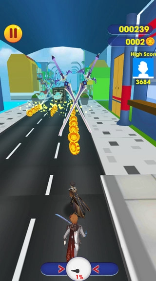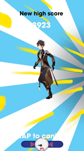 2、游戏正式开始,操控原神角色开始跑酷吧,上划起跳,下滑翻滚,左右闪避才能避开障碍物!