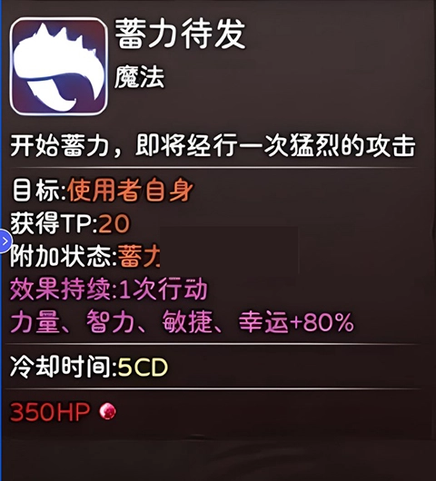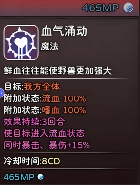 C位必带技能,少量的血量换来下次行动高额的爆发,配合兴奋(后续会说)可以打出很高的爆发。属于必带技能。
