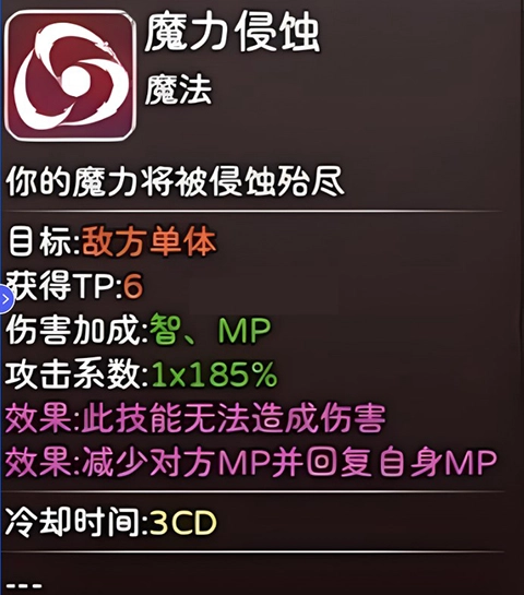 随机1个敌人,获得TP8,附加状态破甲