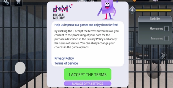1、进入游戏后,点击“i accept the termes” 。需注意,这里“termes”拼写有误,正确应为“terms” 。
