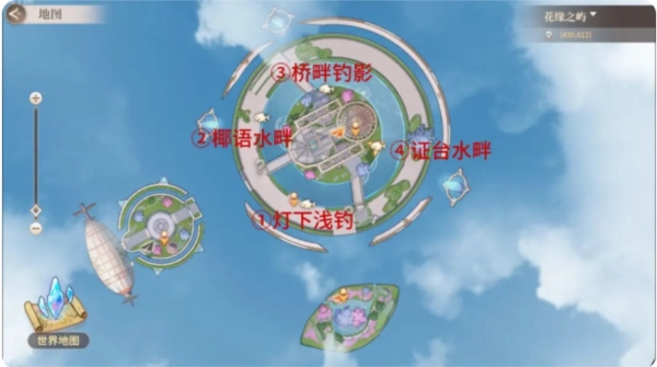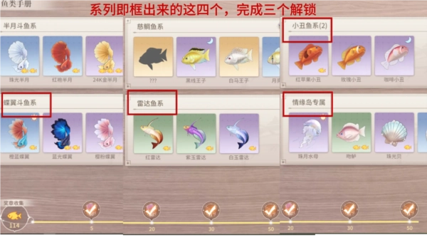 最后来到③钓点,完成(解锁3个情缘岛鱼册系列),解锁④钓点。