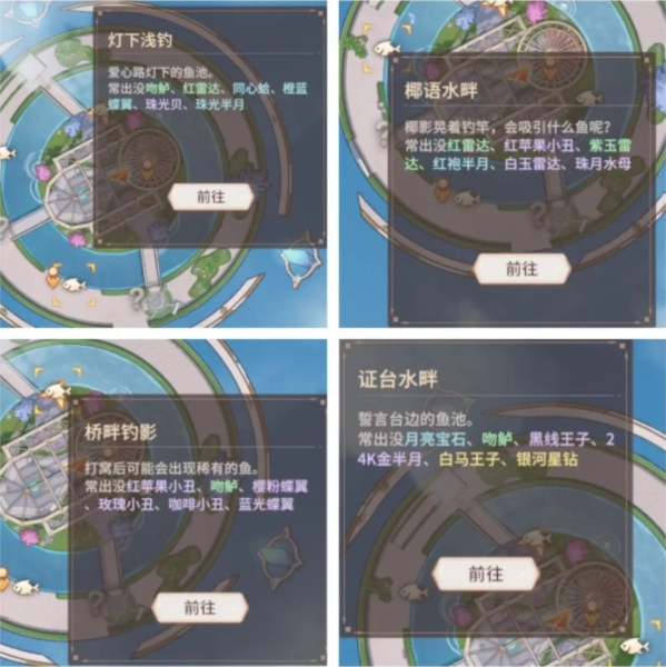 最后附上每个鱼点有什么鱼种!希望大家都快快解锁!(这回情缘岛的比较好钓,相比于前两个地图)主包今天玩了下,就剩最后一条银河星钻没出货啦~
