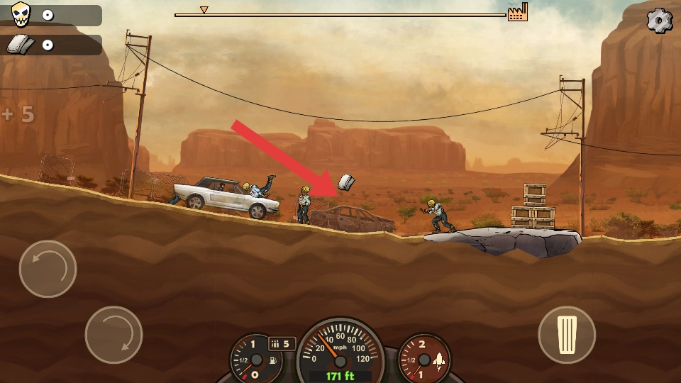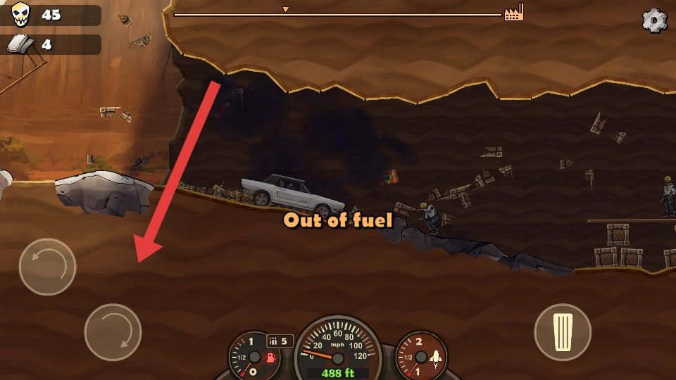 2、留意屏幕右侧的燃料条,需规划好行驶路线——优先选择僵尸较少的平坦路段,减少车辆颠簸导致的燃料额外消耗。