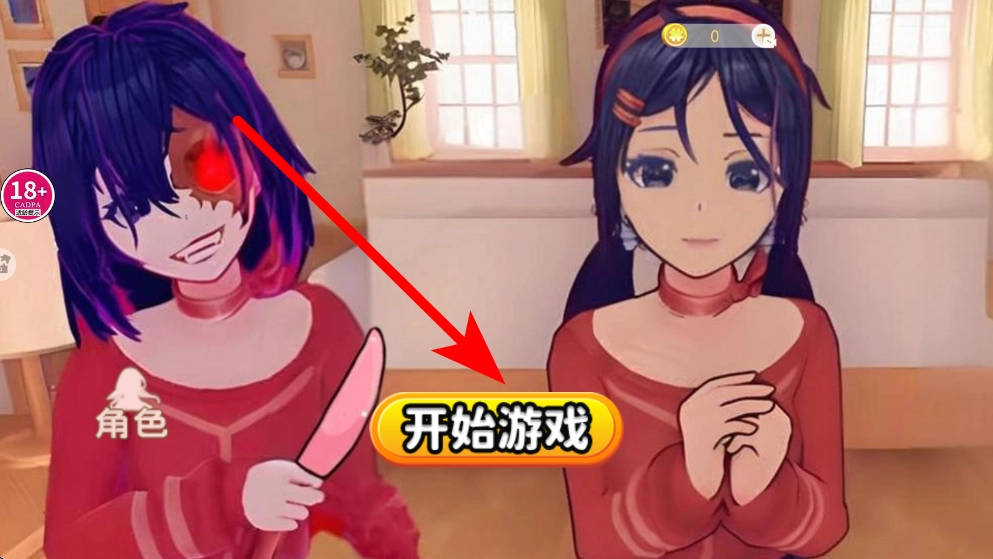 1. 第一步,进入初始界面,在该界面找到“开始游戏”按钮,点击此按钮即可进入游戏,由此开启与病娇少女米塔的互动之旅,随后会进入装扮、互动等后续环节。