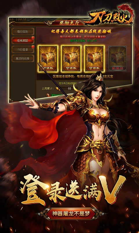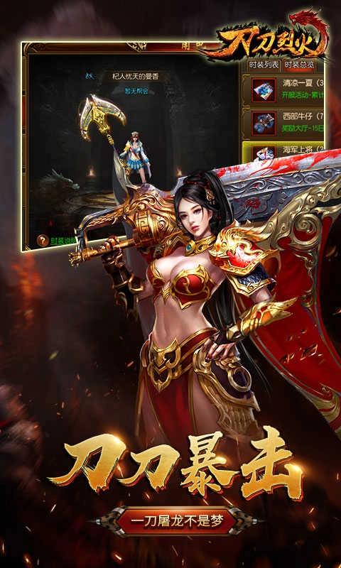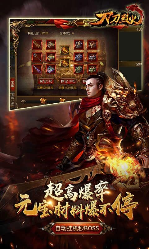 刀刀烈火,一款超好玩的角色扮演传奇类游戏。在这里,战斗刺激无比,极品装备等你斩获。玩家能自由创建角色,还支持挂机模式,无需耗费过多时间,就能轻松收获海量金币与经验,升级速度超快!游戏画面精致,采用 3D 场景设计,剧情更是精彩纷呈,为玩家带来别具一格的视觉盛宴!