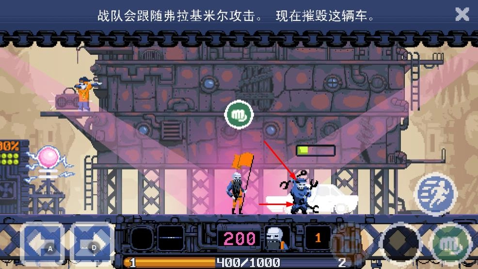 4、战队会跟随角色发起攻击,合力摧毁车辆等目标,完成关卡任务,推进游戏进程。