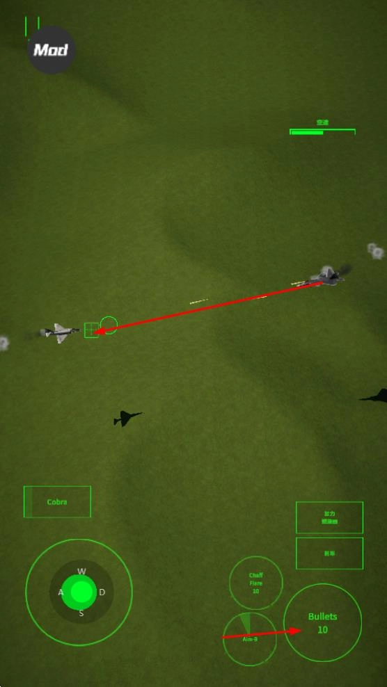 1. 借助虚拟摇杆上的W、A、S、D方向键来操控战机移动,使其能在草地、机场等场景里灵活穿梭,巧妙躲避敌方攻击与各类障碍。