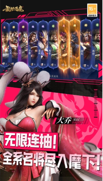 游戏提供非常多的武将,玩家需要在游戏使用招募虎符抽取自己需要的角色,从而编队战斗