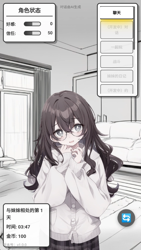 《妹居物语》,这是一款深度融入AI技术的情景模拟类游戏。在游戏里,你将与可爱的妹妹Yuki共同生活。你能毫无拘束地和她畅聊,她的每一句回应皆由AI生成,那种感觉,就像真的在和真人交流一样,极大地提升了剧情体验的真实感。除了聊天,你还能与她一同外出游玩、玩各类游戏、分享故事等等,通过这些互动,不断提升你与Yuki之间的好感度,慢慢地,彼此成为对方生命中独一无二的存在!
