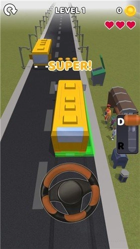 游戏操作简单易上手,只需通过虚拟按键控制车辆的加速、刹车、转向和开关车门等动作。游戏难度逐渐提升,随着游戏进程的推进,会有越来越多的乘客加入游戏,玩家需要更加熟练地掌握驾驶技巧和应对突发情况的能力。