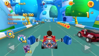 3. 道具加成:在赛道上,玩家可以获得各类道具加成,如加速道具、防御道具等,这些道具可以帮助玩家在比赛中取得优势。