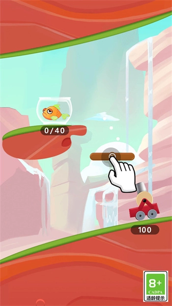 3、玩家所要做的就是抓起小金鱼的尾巴,瞄准好方向,通过弹射操作