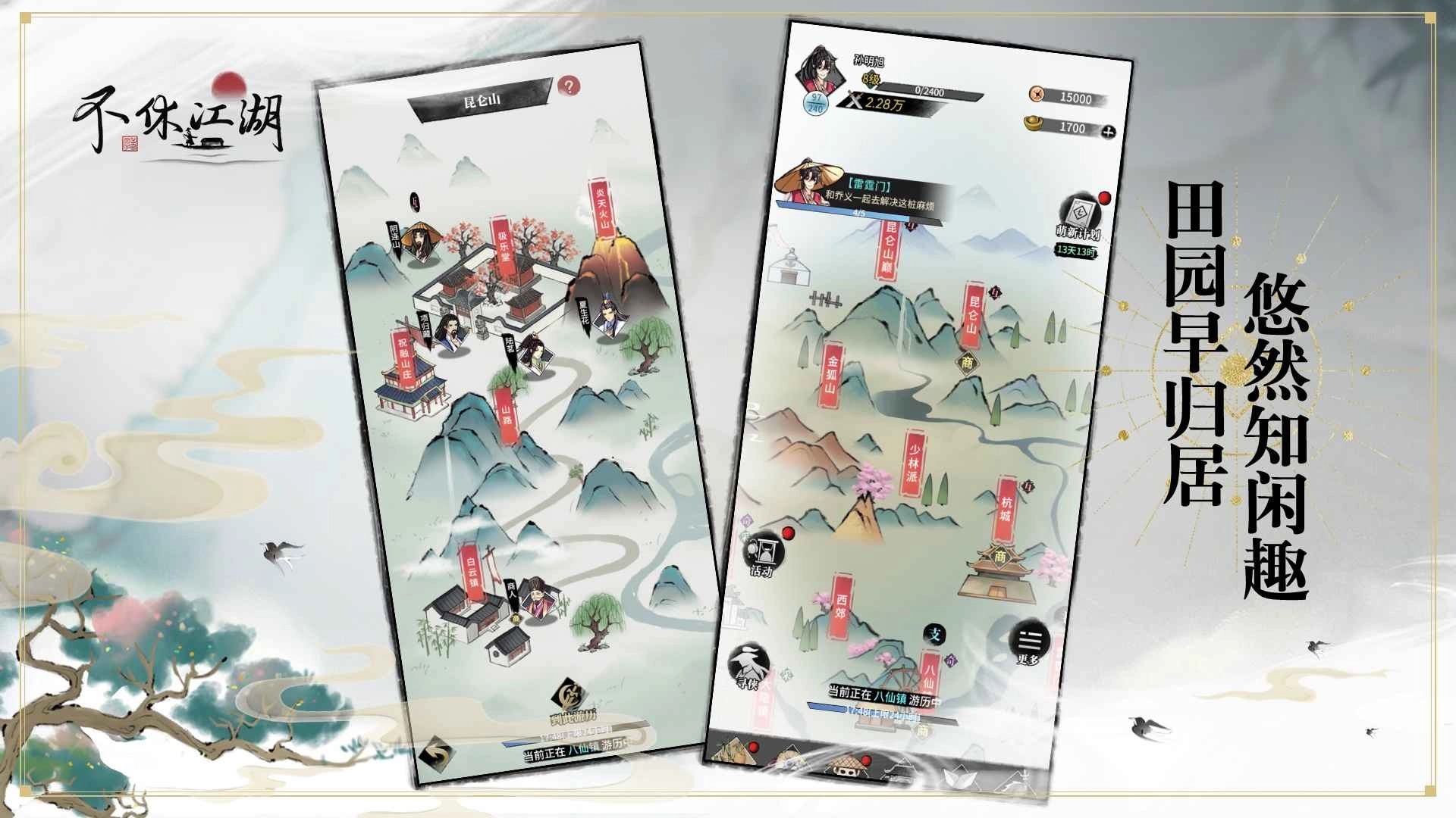 不休江湖,堪称一款出色的江湖武侠游戏。它拥有经典的水墨画风格,游戏画面精致细腻,玩法更是丰富多样。无论你钟情于刀光剑影、恩怨情仇的江湖快感,还是向往隐居乡间的逍遥自在,在不休江湖中,都能寻觅到属于你的答案。快来与我们一同漫游江湖,亲身体验一番吧!