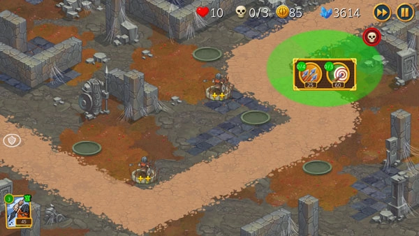 刚进入游戏,第一步便是一段简短的新手教程。玩家能够按照新手教程给出的操作指引,完成塔防策略的布置。选定关卡挑战后,即可直接进入挑战,开启塔防守卫的旅程。