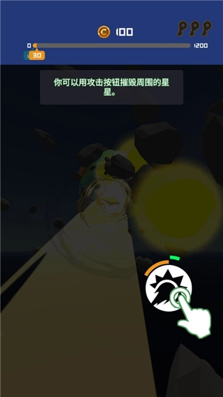 4、点击攻击按钮可以摧毁周围的星星;