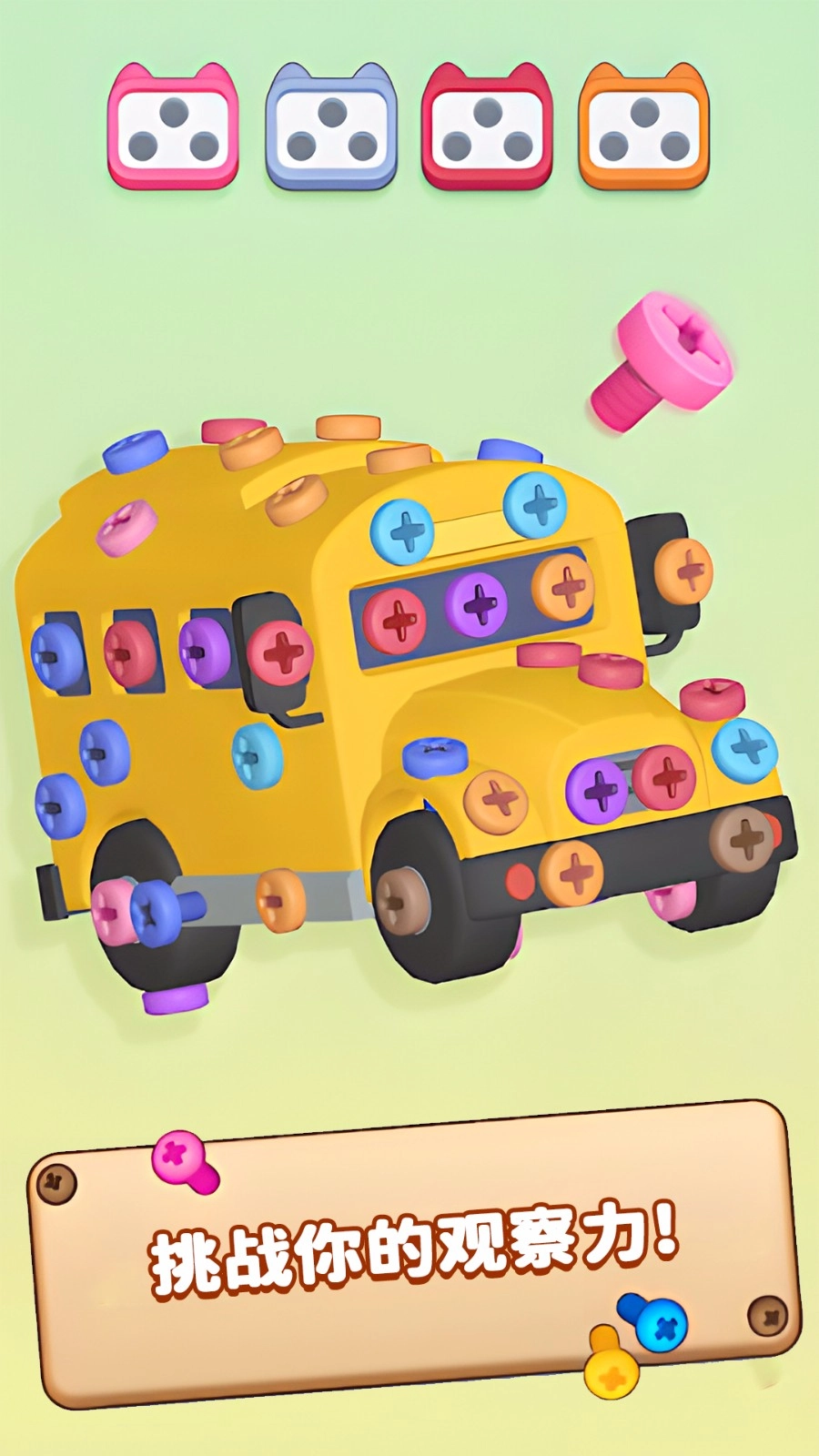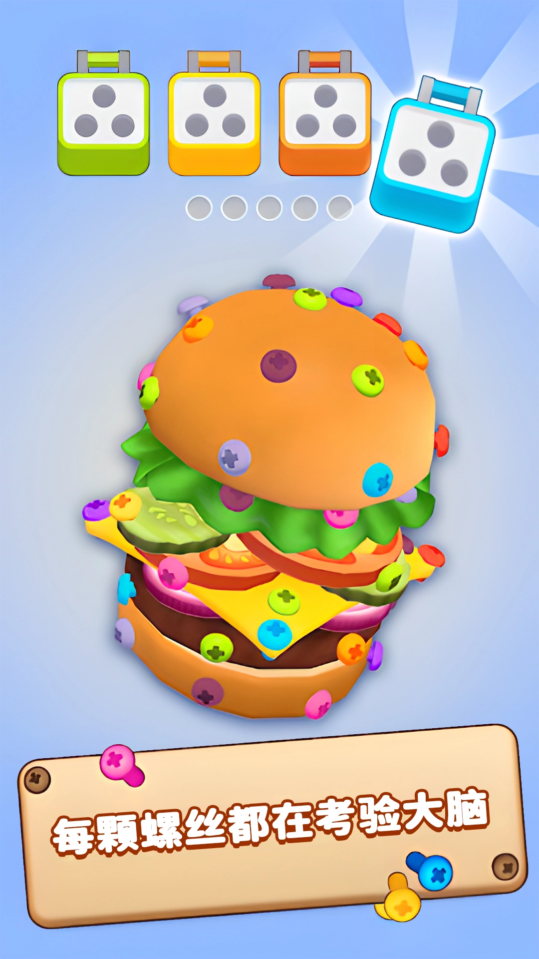烧脑瓶子之打螺丝游戏里,玩家的任务简单却乐趣十足——仅需依据螺丝的颜色找到匹配的箱子。碰到红色螺丝,赶紧拧下来放进红色小箱子;要是瞧见蓝色螺丝,马上把它送回蓝色“家”里。尤其有趣的是,每当集齐三个同色螺丝,它们就会奇妙地在箱子里消失不见。感兴趣的小伙伴们,快来体验吧!