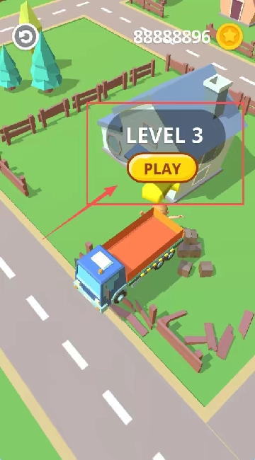 2、进入关卡后,点击"PLAY"开始,将房子前的卡车装满家具,需要合理安排家具装入卡车的顺序和位置。
