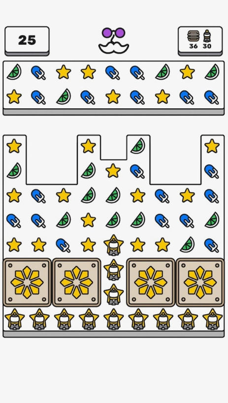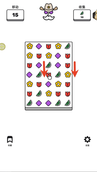 2、通过手指滑动交换相邻的图块,匹配三个或以上相同物品完成消除,达成每关指定的收集或目标分数。