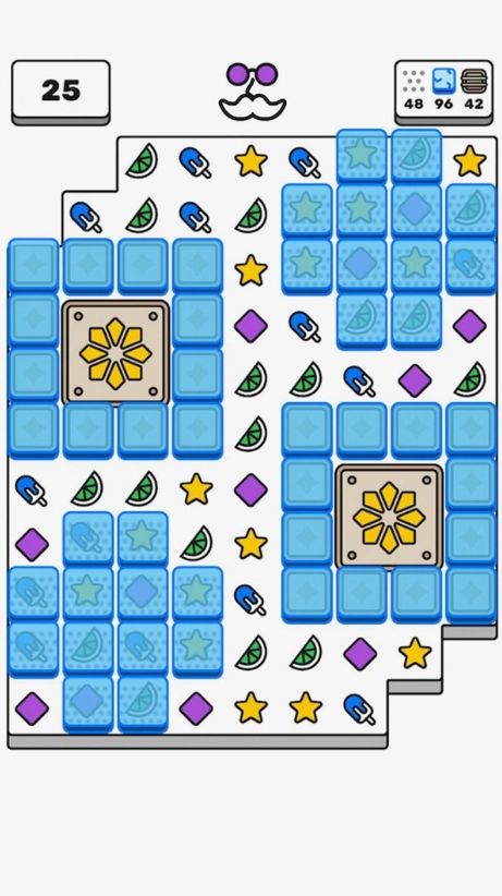 1. 只需通过手指滑动,让相邻图块相互交换,当出现三个或三个以上相同图块连成一线时,就能实现消除,最终完成每关设定的目标任务。