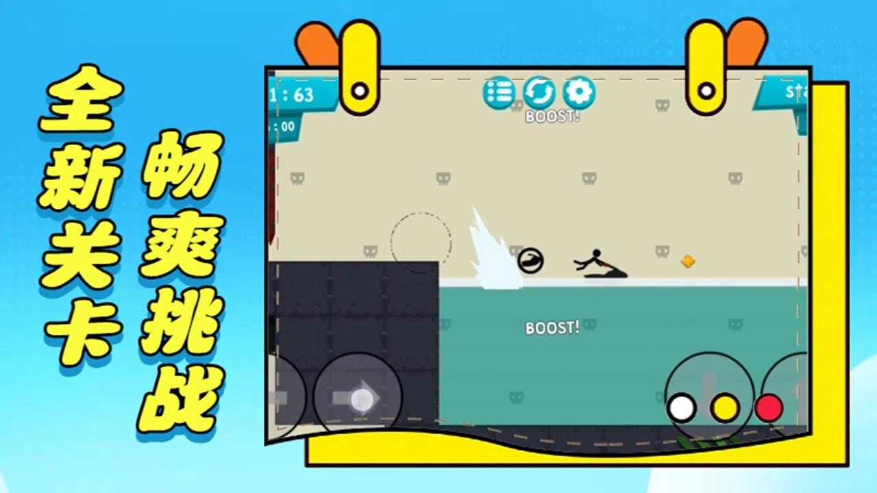 3、采用简洁火柴人画风,去除冗余视觉元素,让操作成为核心,凸显游戏的纯粹竞技感。
