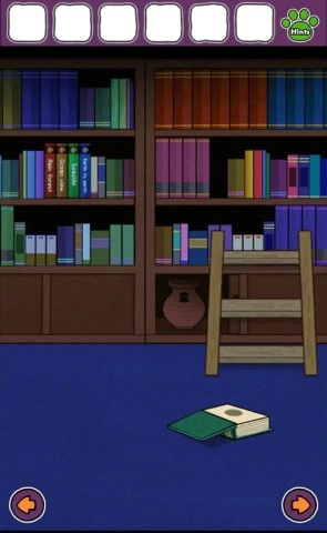 4、在下层,直接向右走,你会发现一个满是书籍的房间。打开书柜底部,得到一只画着章鱼的陶罐。