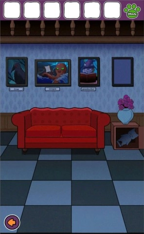 26、最后回到有红色沙发的房间,将画放入最后一幅空白画框,返回到密室最里侧,点击打开门,恭喜你,游戏通关啦!