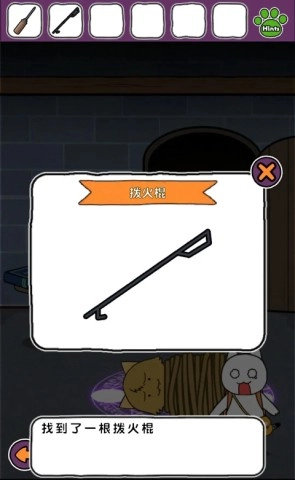 15、打开密室里的门,把灯交给魔女,关上门后再重新打开,你会发现拨火棍出现在你的手中。