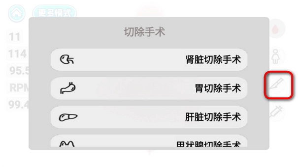 5、点击切除手术,可以选择要操作的手术。