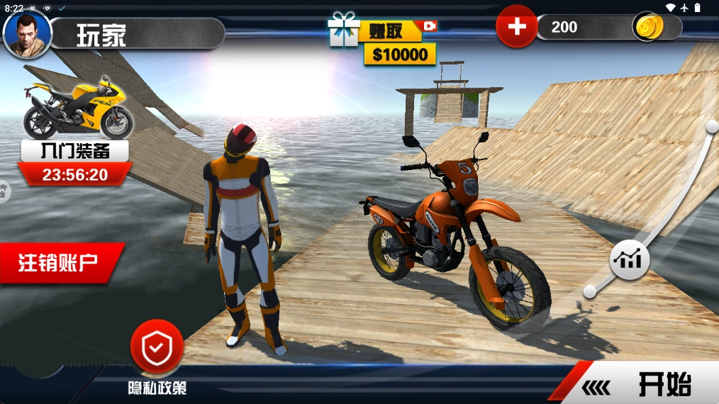 3、数十款摩托免费解锁,支持升级改装,从能量到刹车全方位提升属性,增强竞速竞争力。