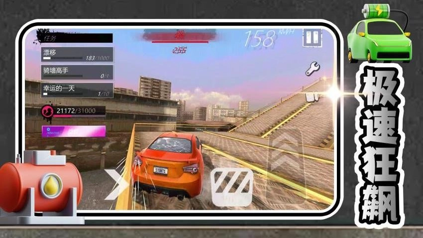 4、玩家需要在游戏的过程完成漂移动作,需要漂移1000M,需要完成骑墙高手任务,完成幸运的一天任务