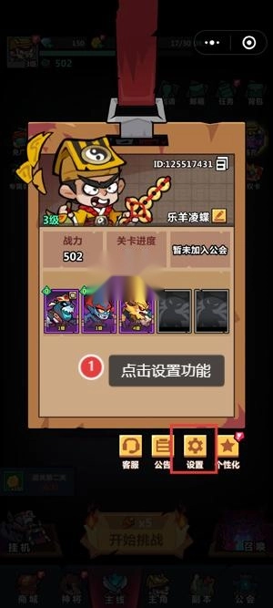 开启你的大昌一中游戏,于个人中心里点击设置功能。
