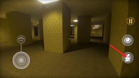2、右侧的按钮允许角色蹲下或起立,以便更好地探索不同的环境细节。