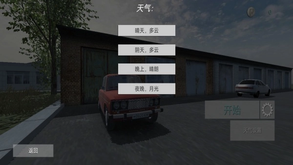 2.点击主界面的“天气设置”,能够调整白天黑夜的天气状况,体验不同天气状态下的驾驶手感。