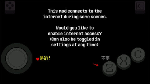 1、进入游戏后,初始状态下虚拟摇杆不会显示,需滑动屏幕,虚拟摇杆才会出现,之后点击“z”并选择“是”。
