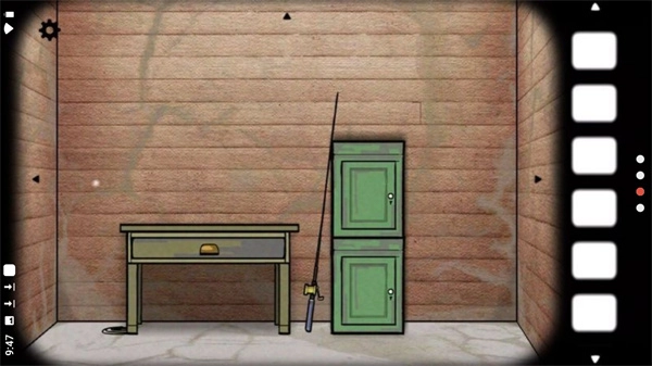 2、收集道具:通过仔细观察,玩家可以在小屋的桌子旁拿到钓线、鱼竿、抽屉里的小刀、天花板上的虫子等重要道具。