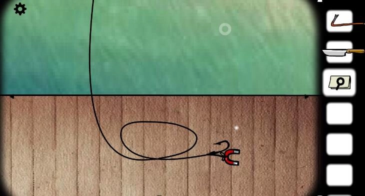 4、钓鱼的原理:钓鱼是解开谜题并顺利逃脱的关键。 玩家需要在游戏中找到钓竿、绳子、诱饵并进行组合,最终将钓竿排列好,挂上绳子和诱饵去钓鱼。