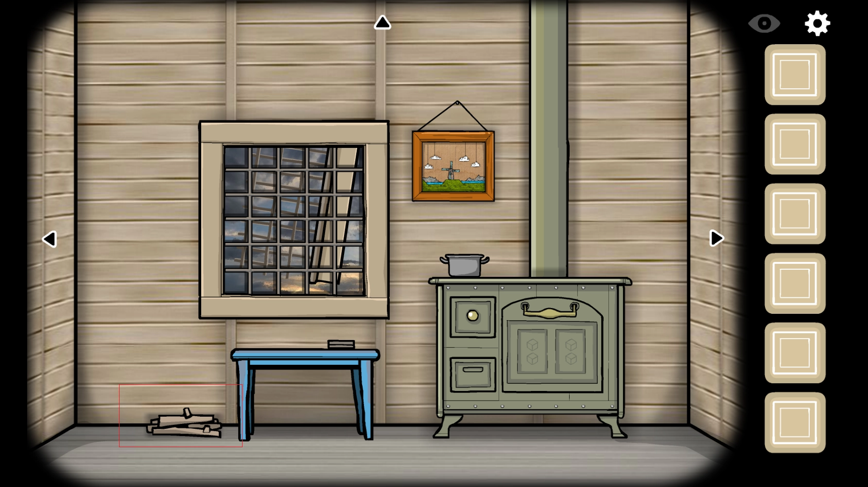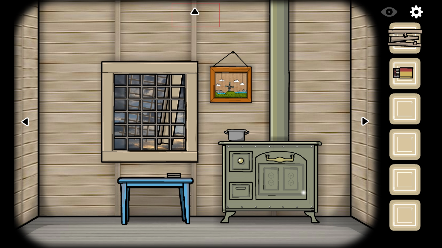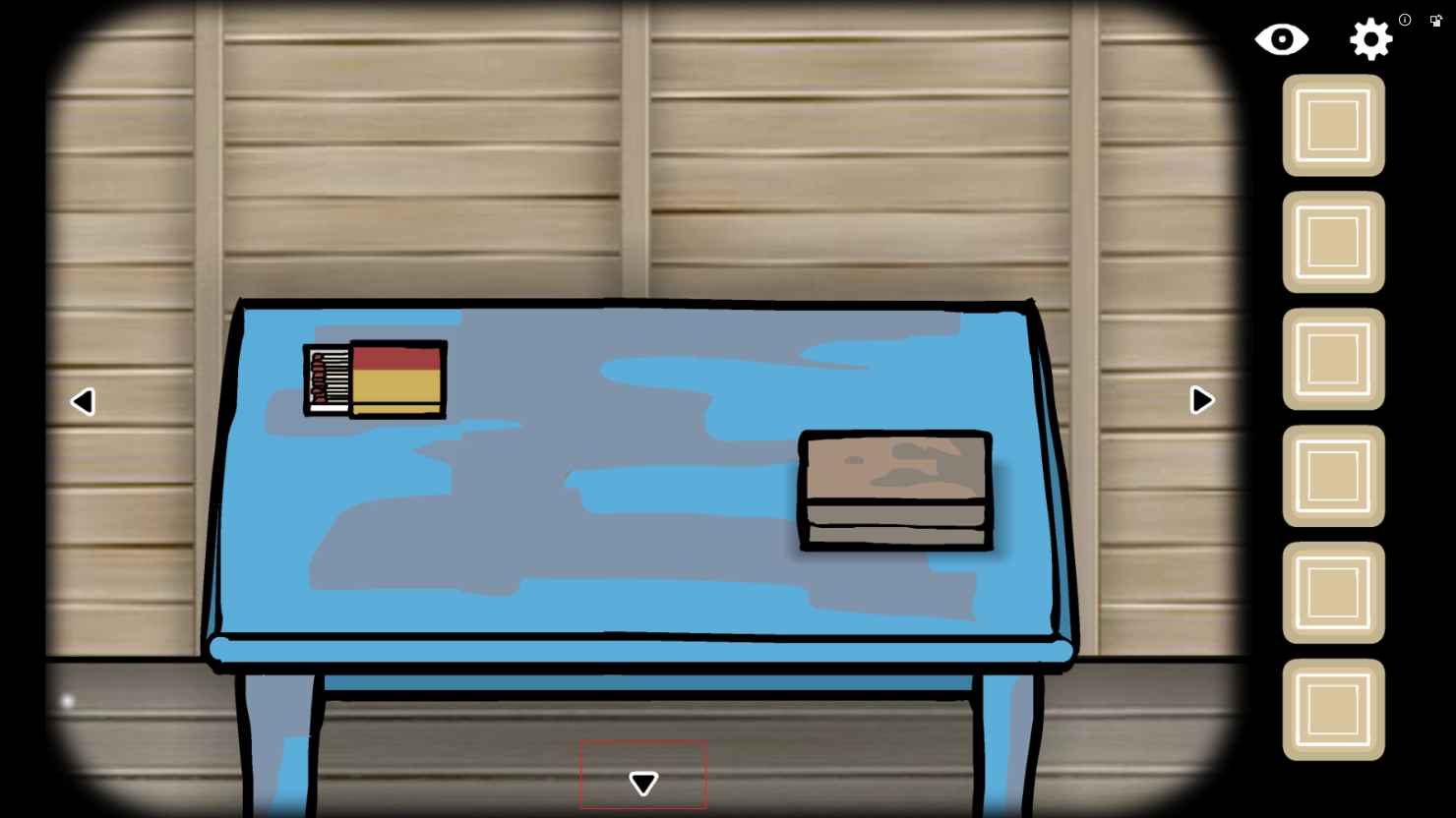2、在蓝色的桌子上,有一盒火柴,点击一下桌子即可查看,点击火柴,放进你的背包