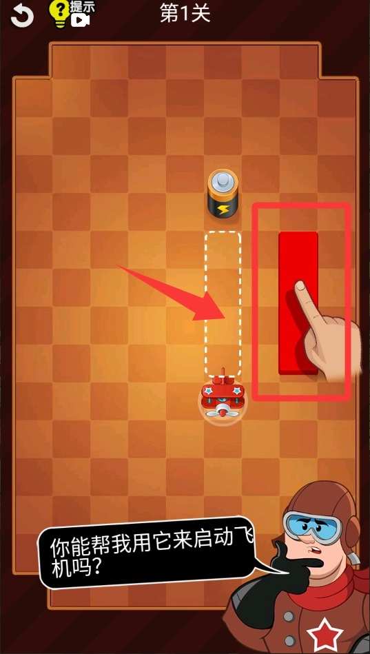 2、用手指滑动屏幕将飞机和电池用线路连接起来,确保电力可以顺利传输到飞机引擎。