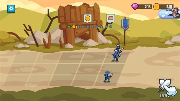 《火柴人战争2:军团之战》是一款以火柴人为核心角色的战争策略类游戏,它巧妙地将经典格斗玩法与军团作战模式融为一体。在游戏中,玩家将扮演军团指挥官,通过合理搭配特种兵、坦克等多种不同兵种,打造一支所向披靡的钢铁之师,进而在三条主要战线上开启波澜壮阔的攻城略地史诗大战。独特的三线作战系统以及深度的养成机制,为玩家带来既充满策略深度,又具备操作爽快感的极致战场体验。