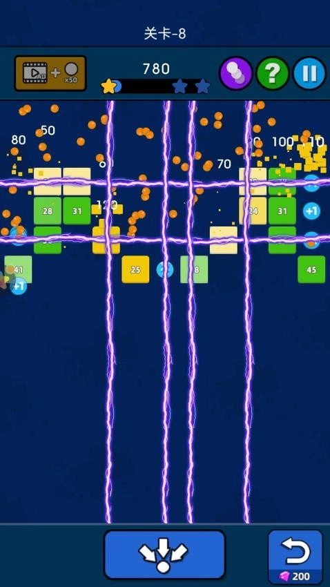 玩游戏的时候可以控制弹珠数量,可以让弹珠移动从而开始攻击方块,可以消除方块