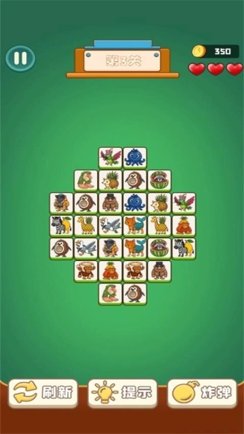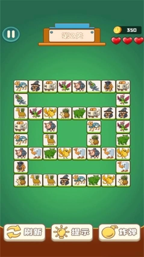 这款游戏属于休闲小游戏范畴,要说休闲摸鱼选什么,那必然是经典连连看。它的游戏规则十分简易,只需点击两个图案一样的麻将块,便会出现一条线连接这两块,紧接着这两个麻将块就会被消除。不过要留意,这条连线最多允许拐两次弯,要是超过两次,这两个麻将块不会被消除,而且会扣除玩家一颗红心。当所有麻将块都被消除,游戏即宣告胜利;要是红心被扣光了,游戏就失败了。
