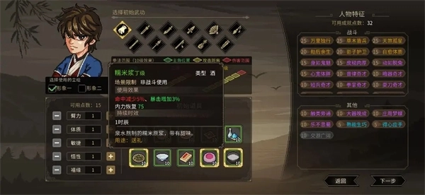 1、初次体验软件学堂的玩家,建议选择拳开局,这种方式相对友好。若想尝试其他开局,也完全没问题,只是加入对应宗门的时间会稍晚一些。 2、加点推荐10臂力与7敏捷,走秒杀拳路线,初始道具带上这三个。