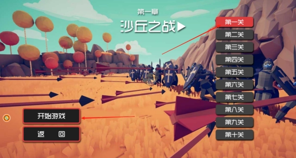 1、首先进入第一章当中,主题是山丘之战,一共有十个关卡,从第一关开始挑战。