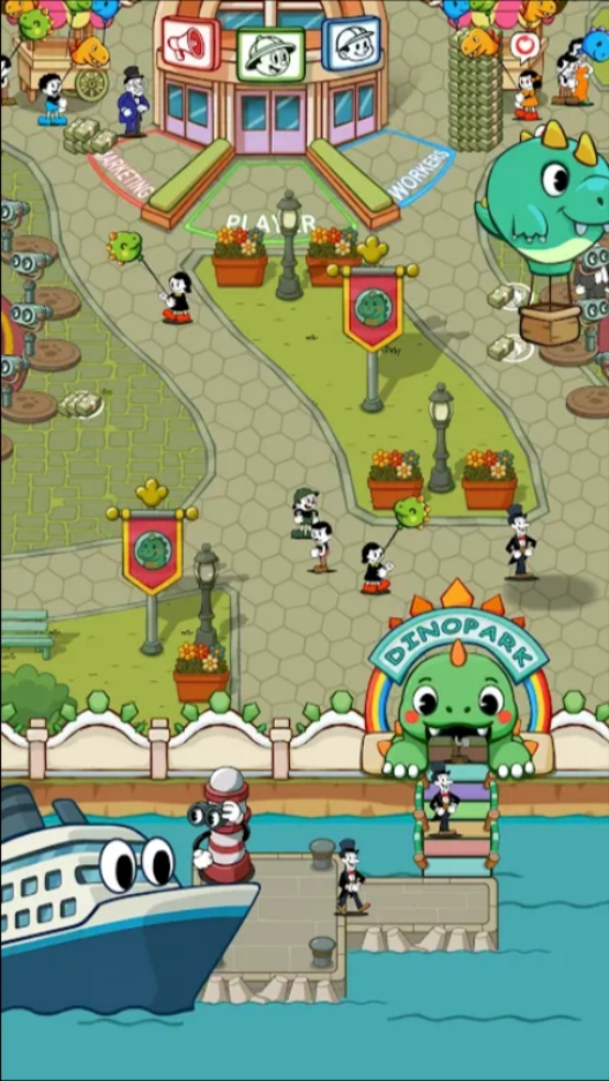 5、策略性布局是核心:将高人气恐龙安置在公园中心,在游客动线周边设置餐饮与纪念品商店,最大化收益效率。
