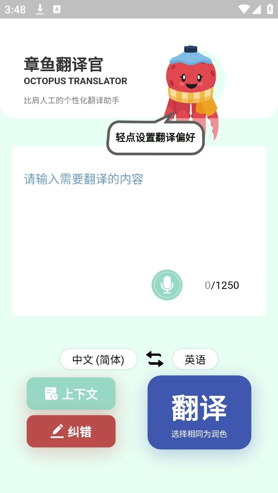 章鱼翻译官是一款免费的翻译软件,其翻译工具便捷好用。它具备智能化语音识别功能,能实现高效快速的翻译交流。无论何时,你都可以打开这款软件,选择不同语音进行转换翻译,精准获取翻译结果,从而更好地理解与交流。该软件方便在不同手机端安装,供用户免费使用。用户可以找到适合自己的翻译方式,软件凭借先进的翻译技术为用户服务。随时都能安装并操作这款软件,有需要的用户快来使用吧!