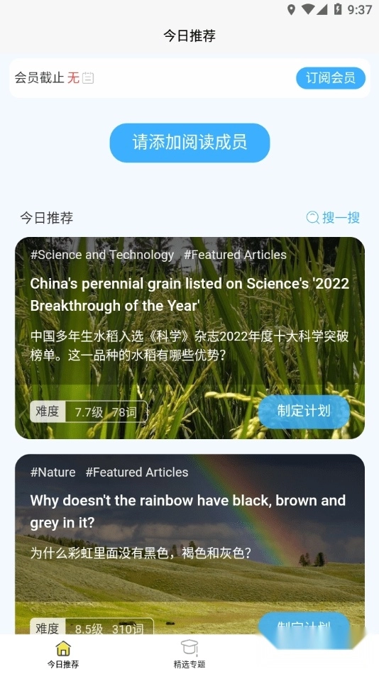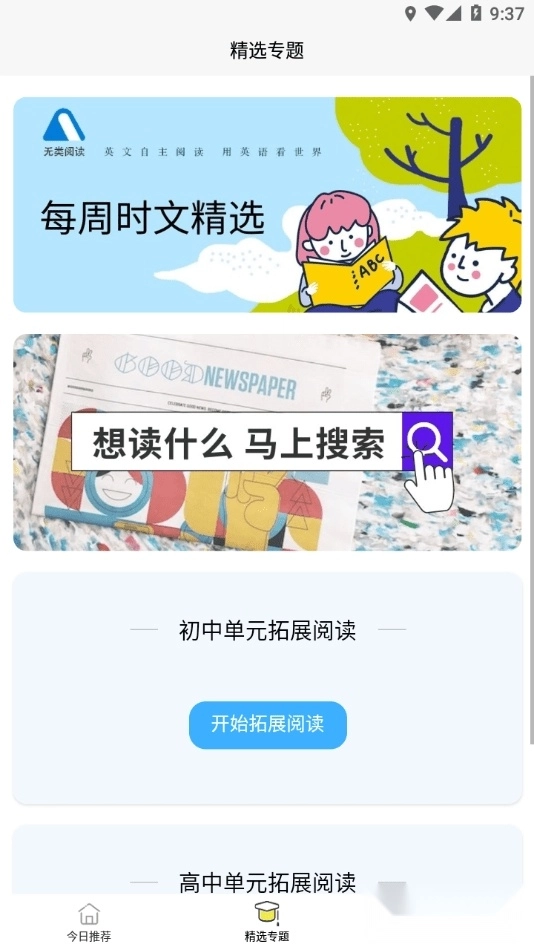 2、无类阅读是一款拥有优质新鲜内容的英语阅读学习软件。