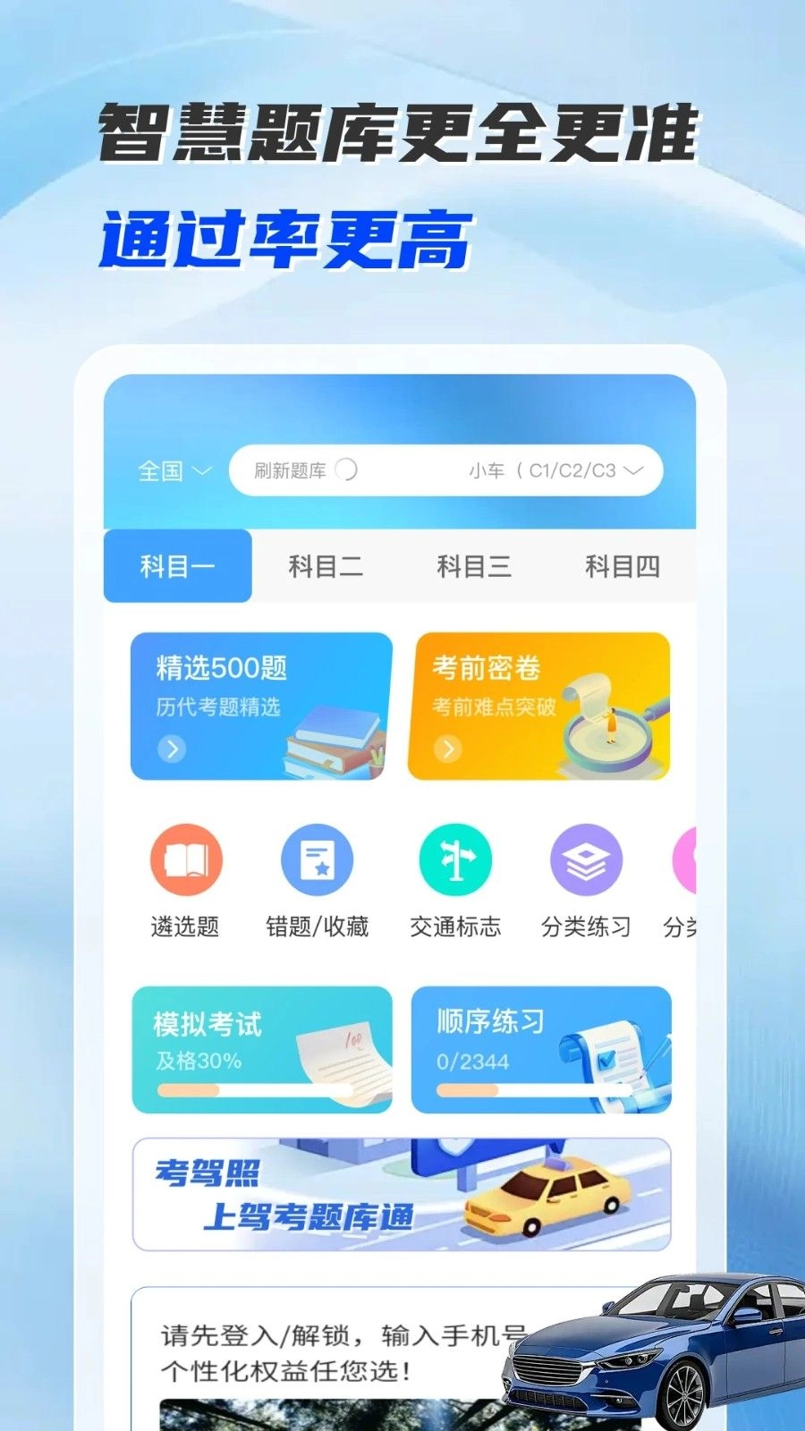 2、智慧题库不断更新,通过率很高,简单的方式开始驾照考试