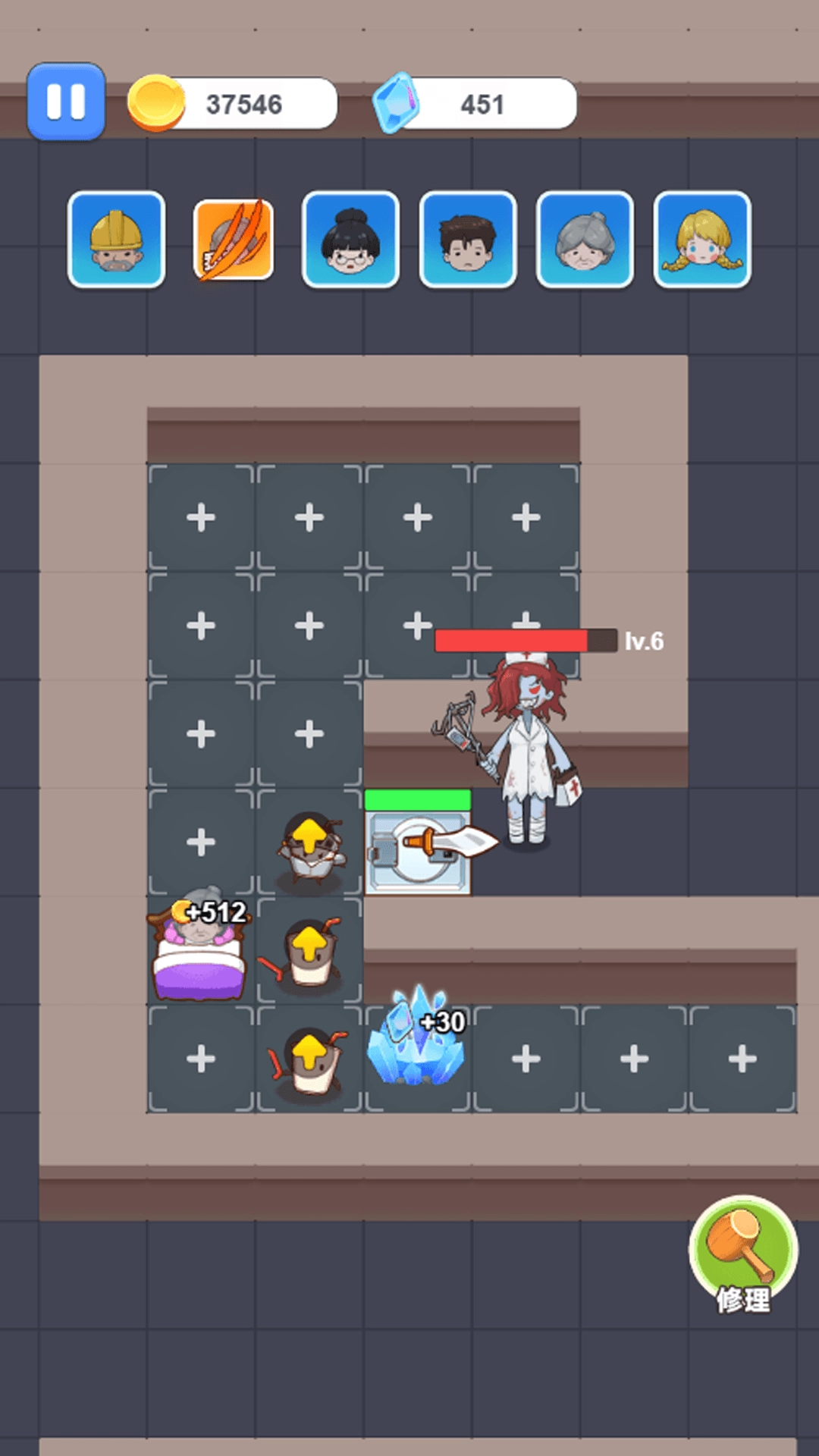 3、玩得越久,猛鬼打门会越厉害,从慢慢撞变成快速破坏,玩家得更快加固房门,挑战越来越大。