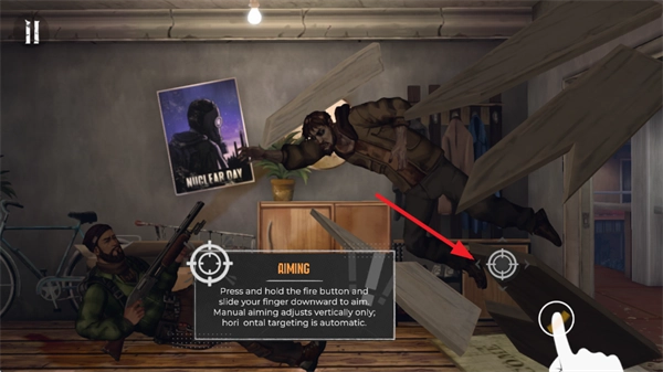 3、移动右边旋钮使得枪口在红色区域就可以击败敌人。
